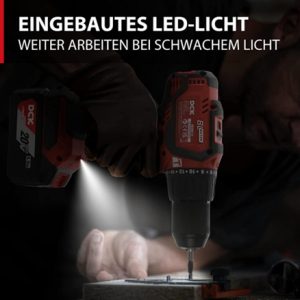 Das Produkt umfasst ein 13-mm Vollmetall-Ratschenfutter mit 22+1+1 Drehmomenteinstellungen. Der Bohrhammer verfügt über ein duales Getriebe mit zwei unterschiedlichen Geschwindigkeitseinstellungen, der neuesten Generation, sogar mit variablem Auslöser. Darüber hinaus ermöglicht das eingebaute LED-Arbeitslicht ein effektives Arbeiten auch bei extrem schlechten Lichtverhältnissen.