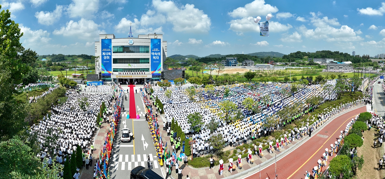 Am Morgen des 8. Septembers war Cheongju, Nord-Chungcheong, in Aufruhr. 80.000 Menschen, ca. ein Zehntel der Bevölkerung in Cheongju (850.000), versammelten sich an einem Ort zum Sonntagsgottesdienst. Als bekannt wurde, dass der Vorsitzende der Shincheonji Kirche Jesu, Lee Man Hee, zu Besuch kommen würde, versammelten sich nicht nur die Mitglieder des Matthias-Stammes, der für die Region Chungcheong zuständig ist, sondern auch die Mitglieder des Stammes Johannes, der für Seoul und die südliche Gyeonggi-Region zuständig ist, sowie die Amtsträger aller Shincheonji-Kirchen im ganzen Land zum gemeinsamen Gottesdienst.In diesem Jahr jährt sich die Gründung der Cheongju-Kirche zum 30. Mal, was ihr noch mehr Bedeutung verleiht. Mehr als 100 christliche Pastorinnen und Pastoren aus dem ganzen Land nahmen ebenfalls an der Veranstaltung teil, um der Predigt des Versammlungsleiters zuzuhören.