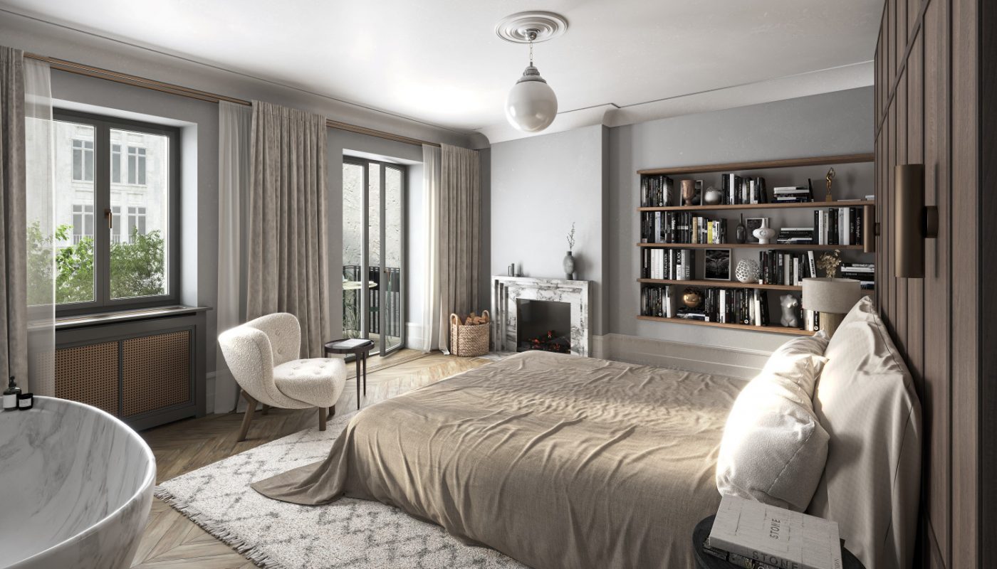 Claudius 8 überzeugt vor allem durch seine Ästhetik. Nach der Sanierung präsentiert sich das Haus nun optisch wieder nah am Originalzustand mit der typischen Berliner Altbauatmosphäre. So finden sich hinter der hergerichteten Gründerzeitfassade Echtholzparkett, Marmorfliesen oder aufgearbeitete Stuckelemente an den Decken. Diese wurden mit modernem Komfort und hochwertiger Ausstattung kombiniert: Bäder mit Fußbodenheizung, bodengleiche Dusche sowie moderne Haustechnik, und ein verglaster Außenaufzug. Die renommierte Interior Designerin Nora von Nordenskjöld vom Architekturbüro NOVONO hat zudem eine unikal kuratierte Innenausstattung für alle Wohnungen entworfen. Diese kann besonders in den beiden Musterwohnungen im ersten Stock erlebt werden. Hier hat die Designerin je ein Studio und ein Apartment in zeitloser Ästhetik, mit ausgesuchtem Mobiliar und viel Liebe zum Detail eingerichtet. Das Raumdesign folgt dabei dem historischen Wesen des Baus im Dialog mit dem modernen Leben. Nun besticht jeder der drei Wohnungstypen mit einem individuellen Look. Die neuen Bewohner müssen also einfach einziehen und können sich sofort in ihren neuen vier Wänden wie zuhause fühlen.